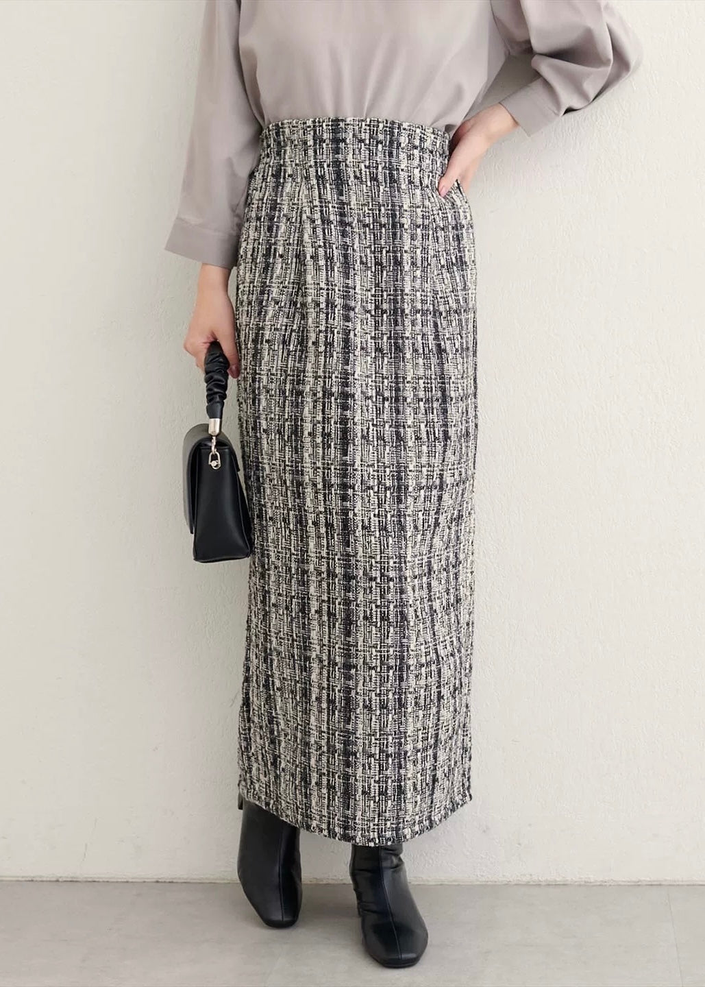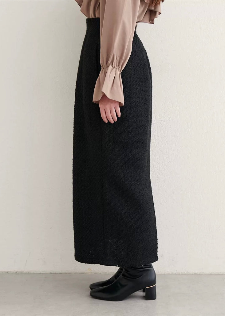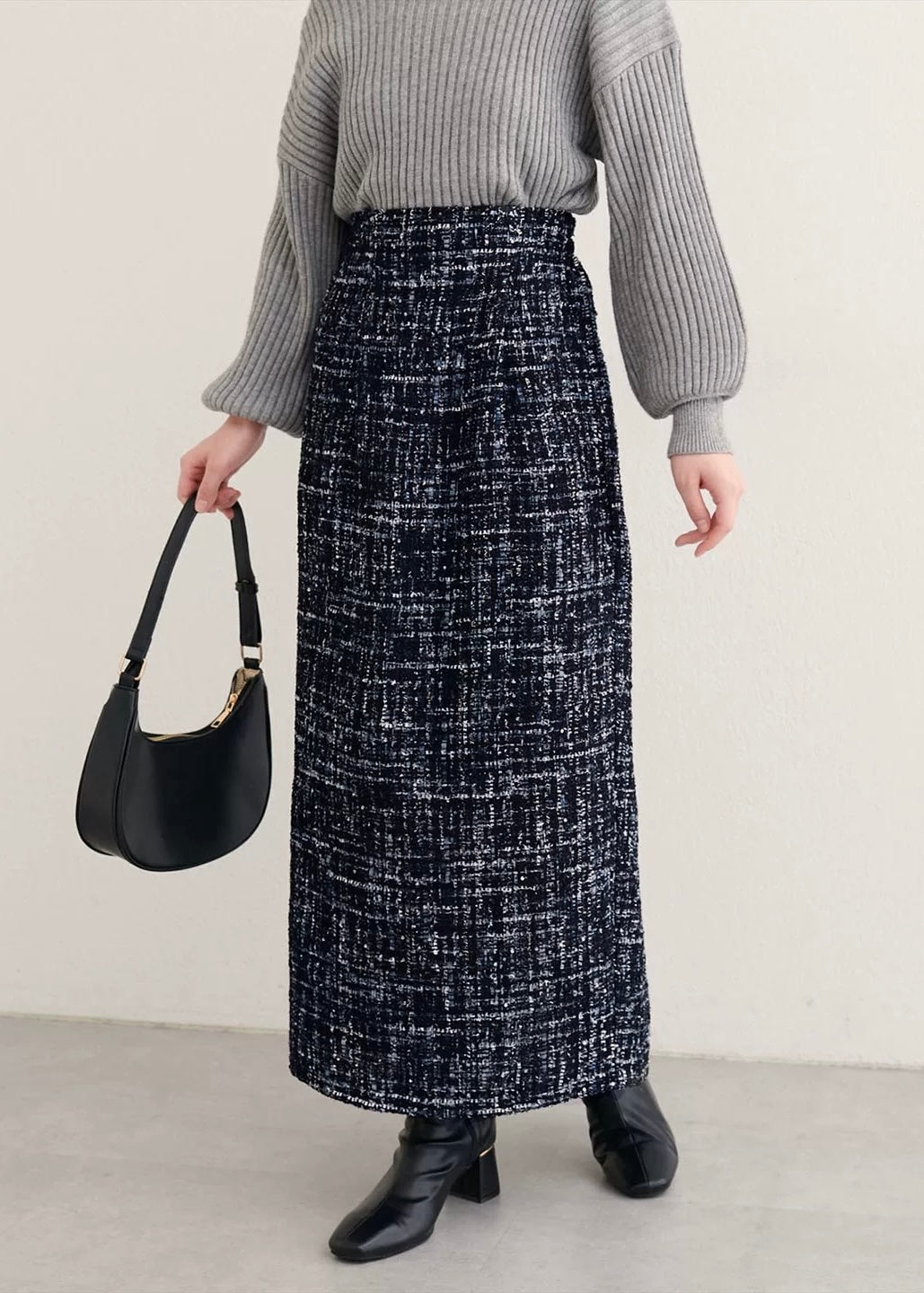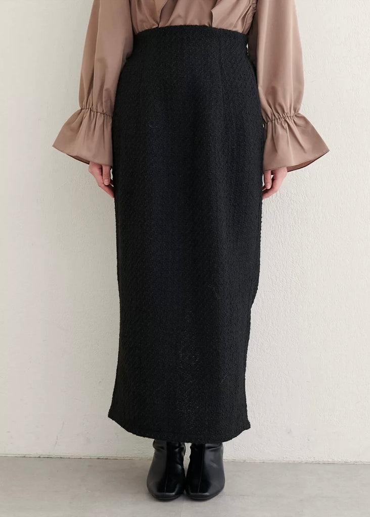 表情のあるブークレ素材で仕立てた、大人の女性にぴったりなタイトスカート。