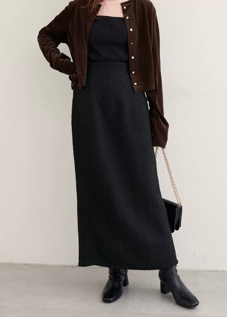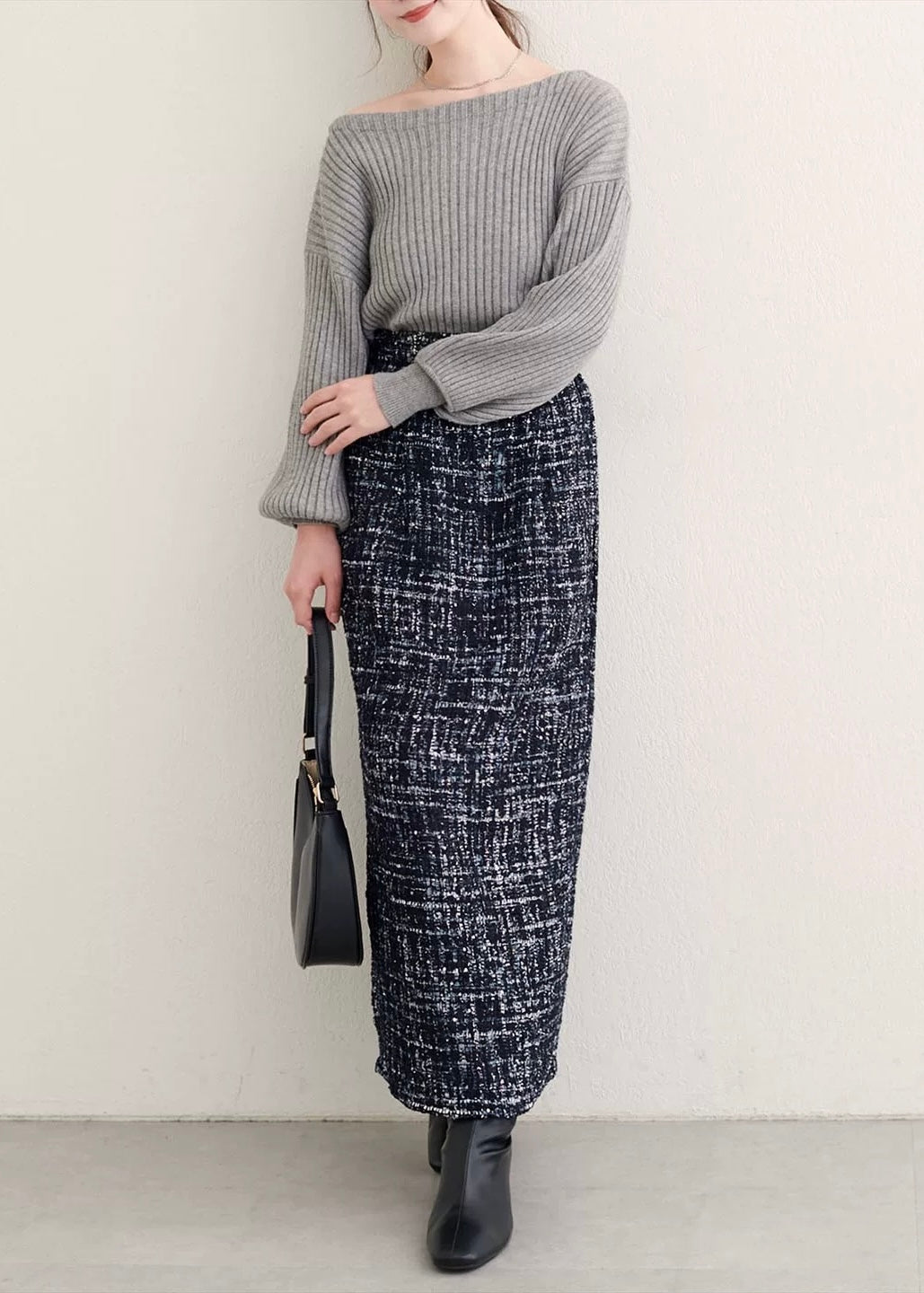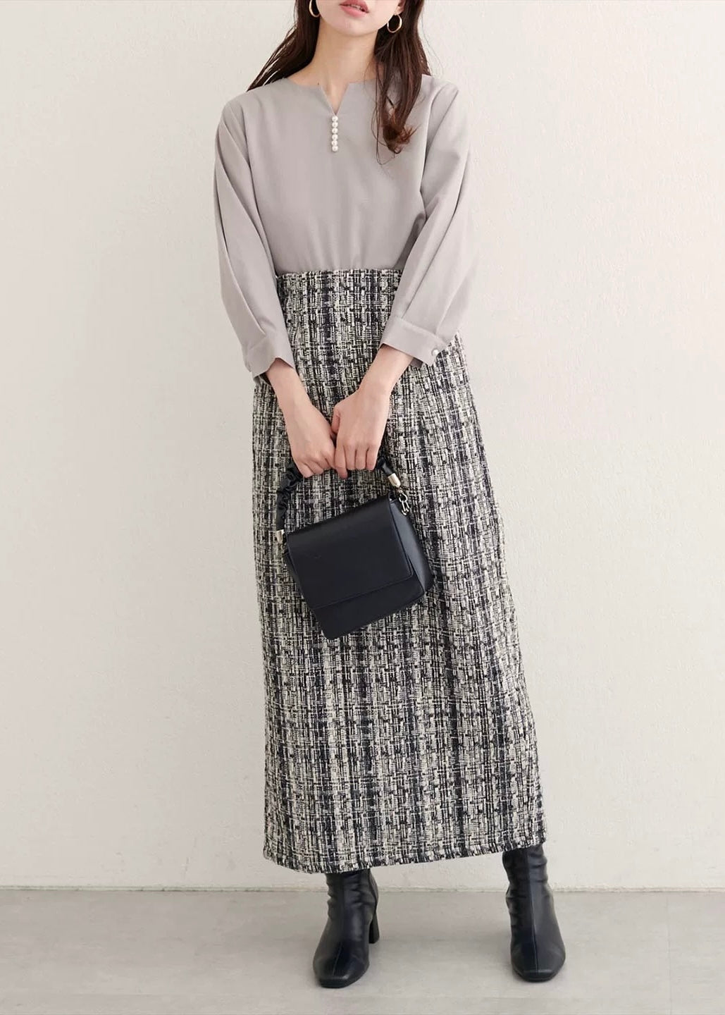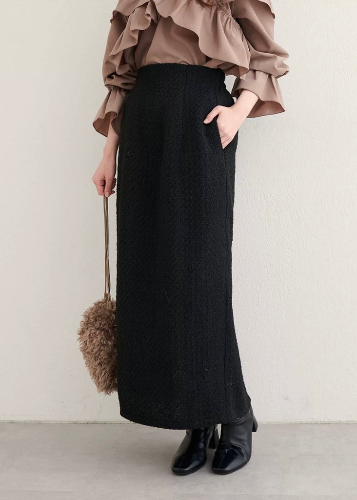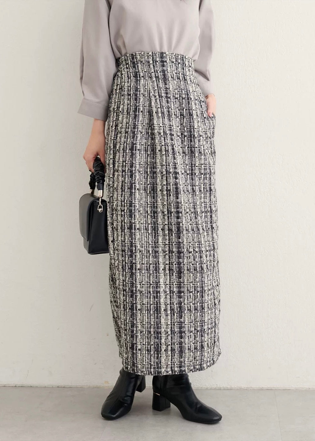 表情のあるブークレ素材で仕立てた、大人の女性にぴったりなタイトスカート。
