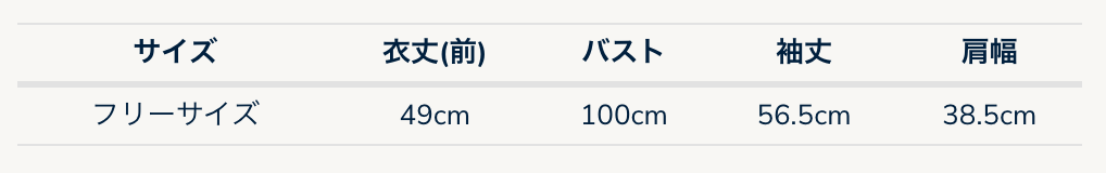 サイズ | 衣丈(前) | バスト | 袖丈 | 肩幅 |