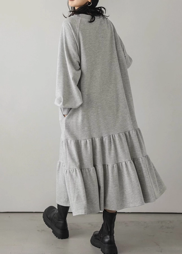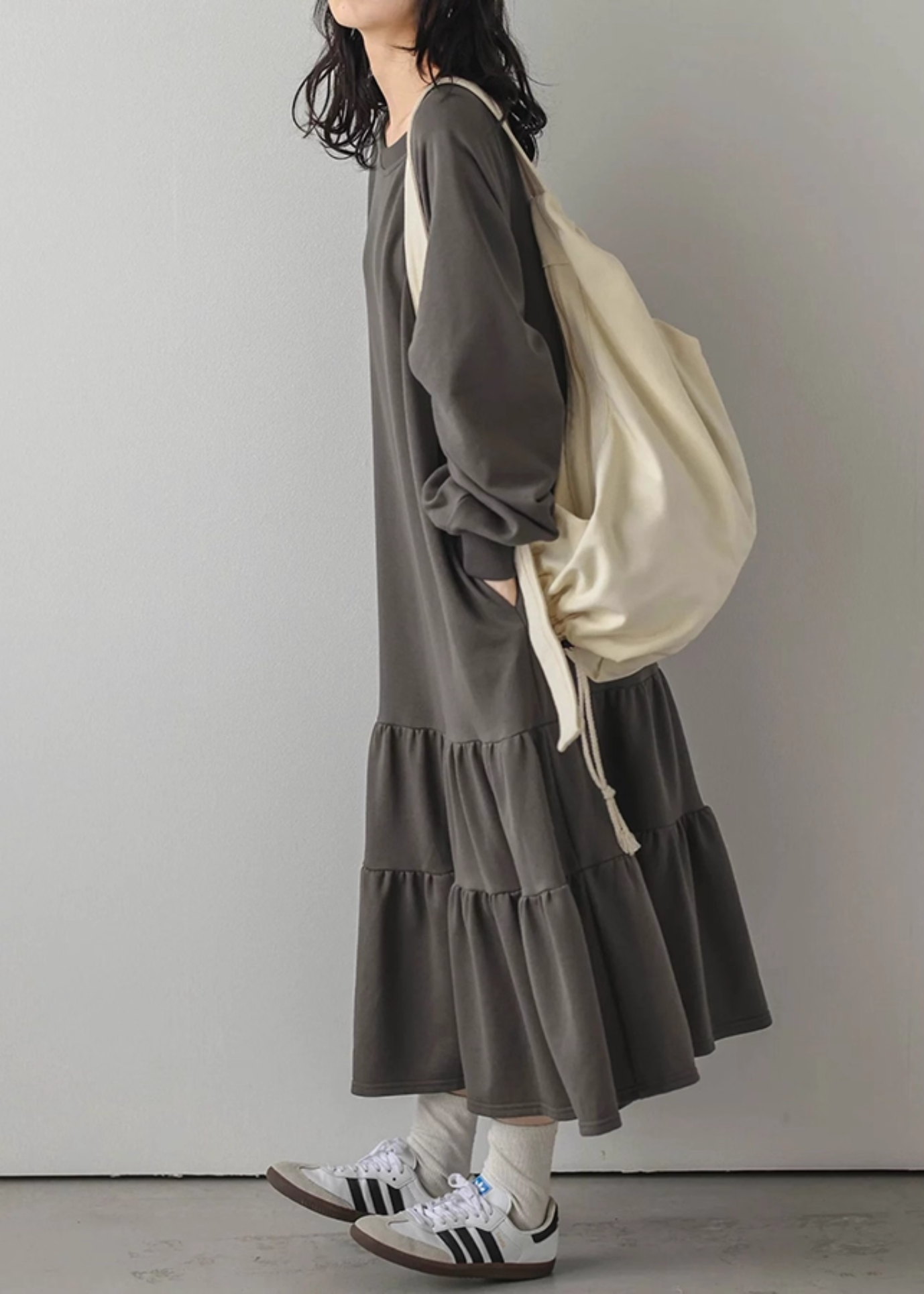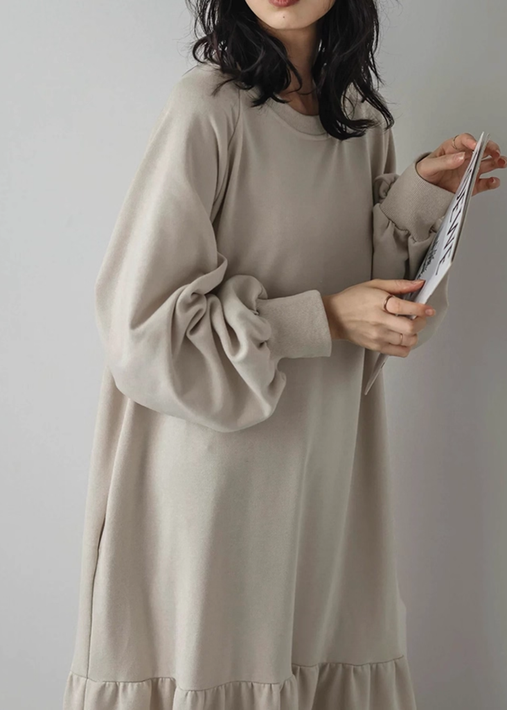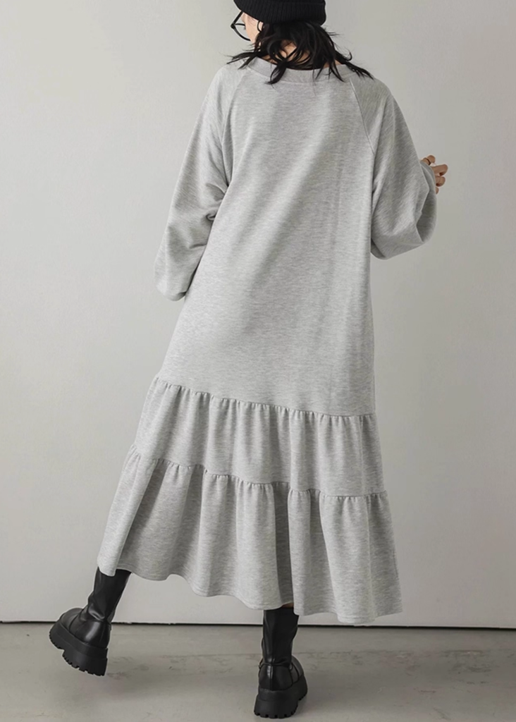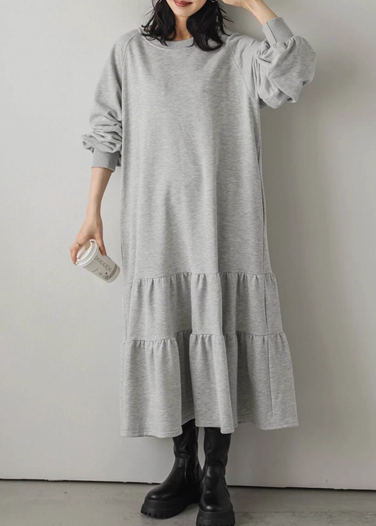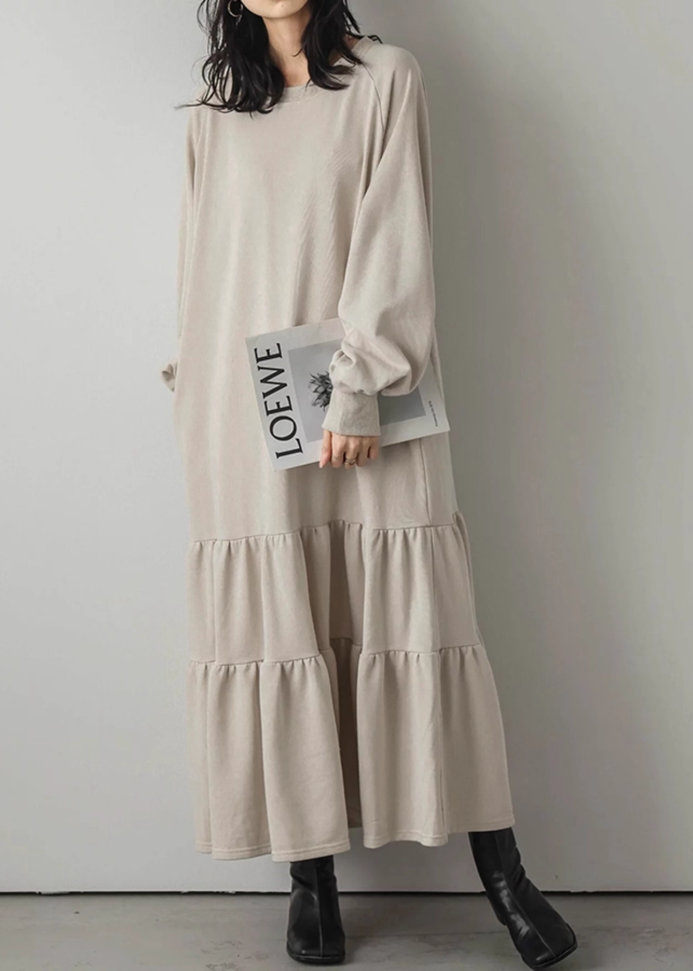 軽やかなティアードシルエットが魅力の、カジュアルフェミニンなスウェットワンピース。