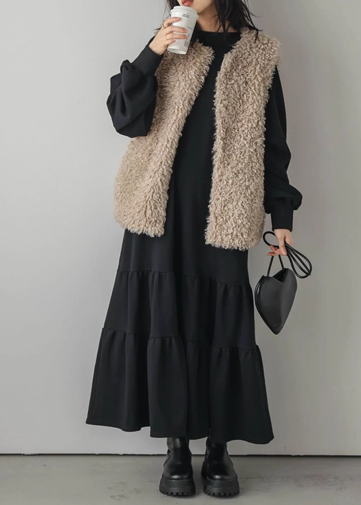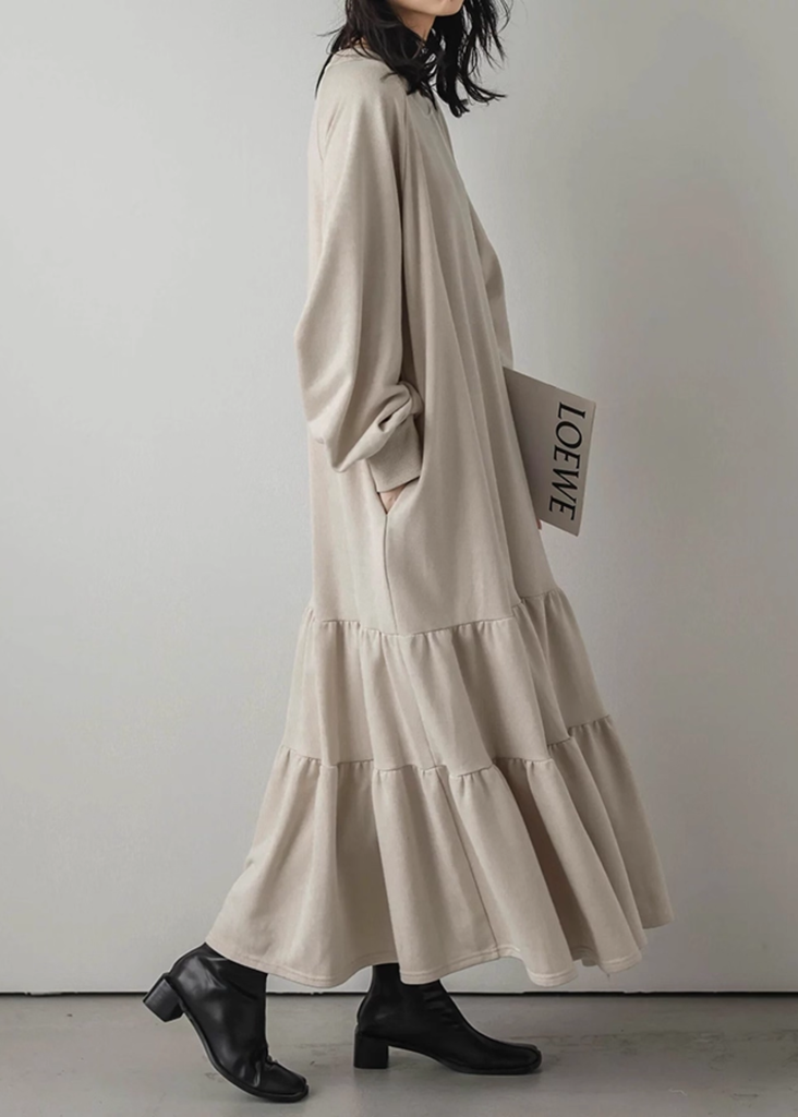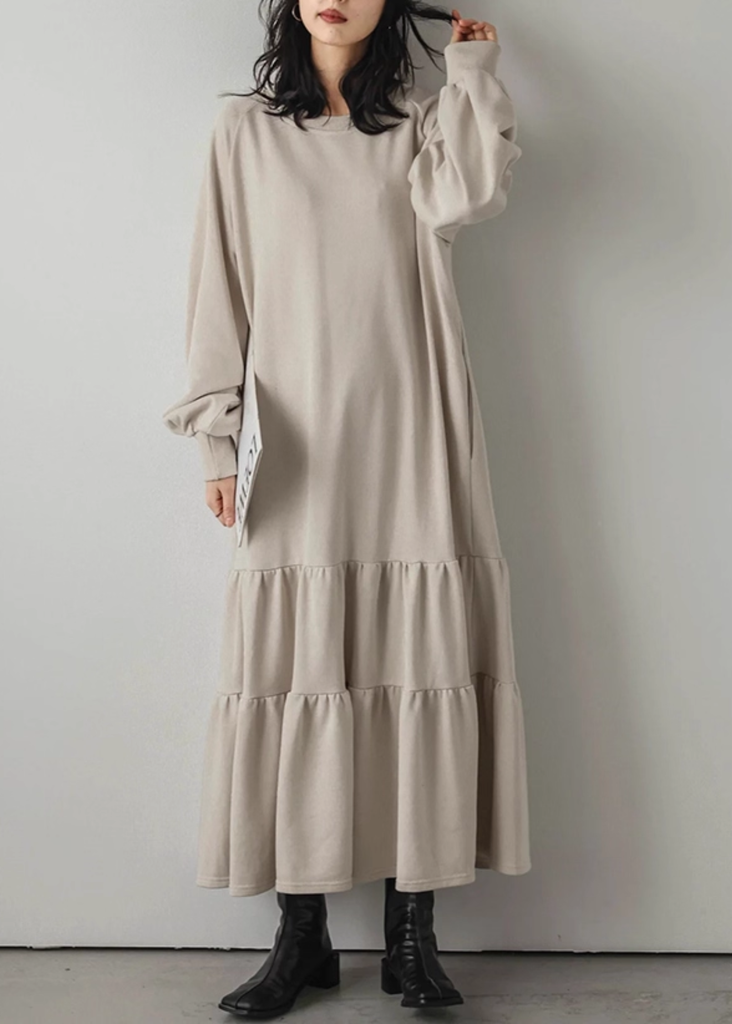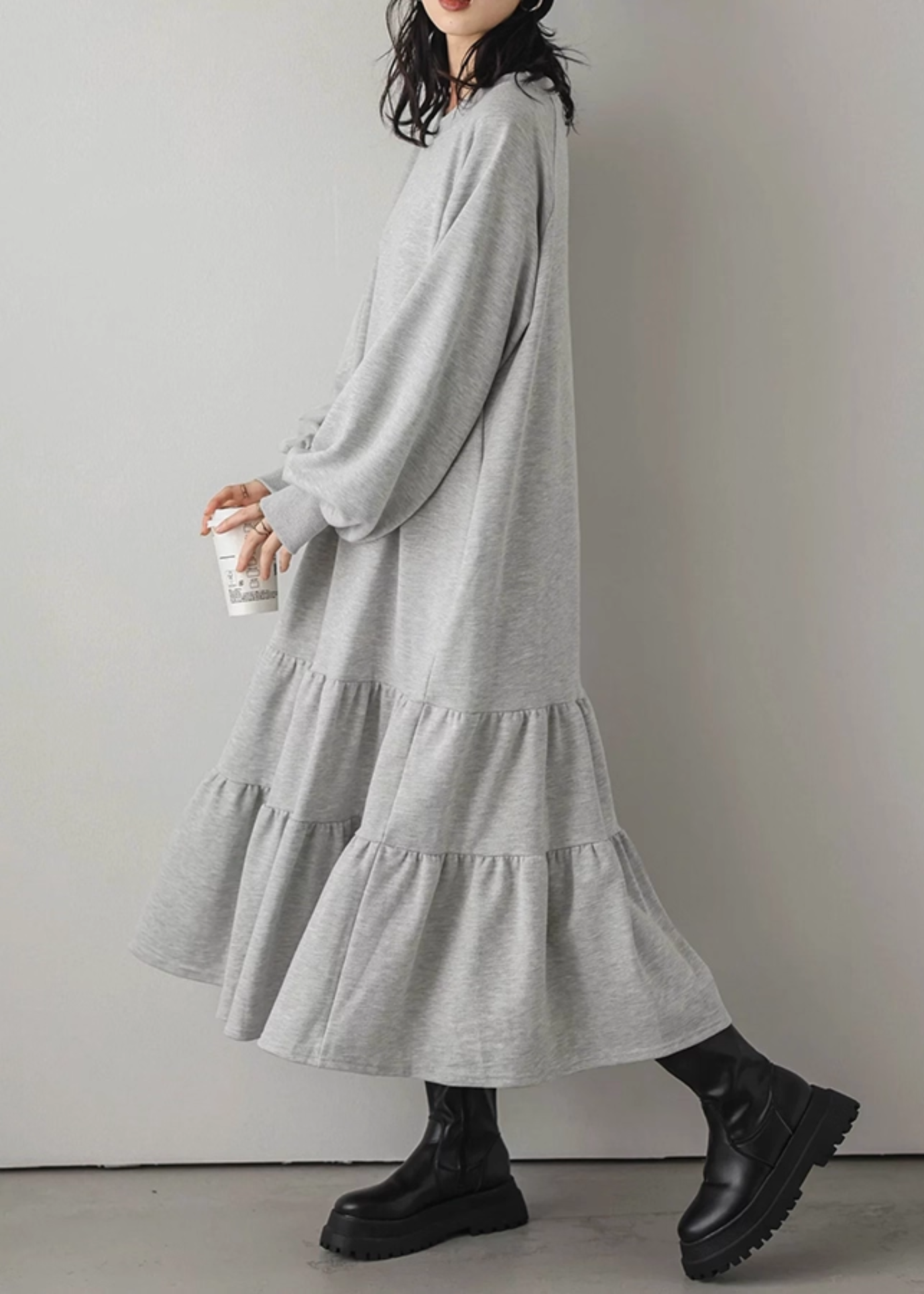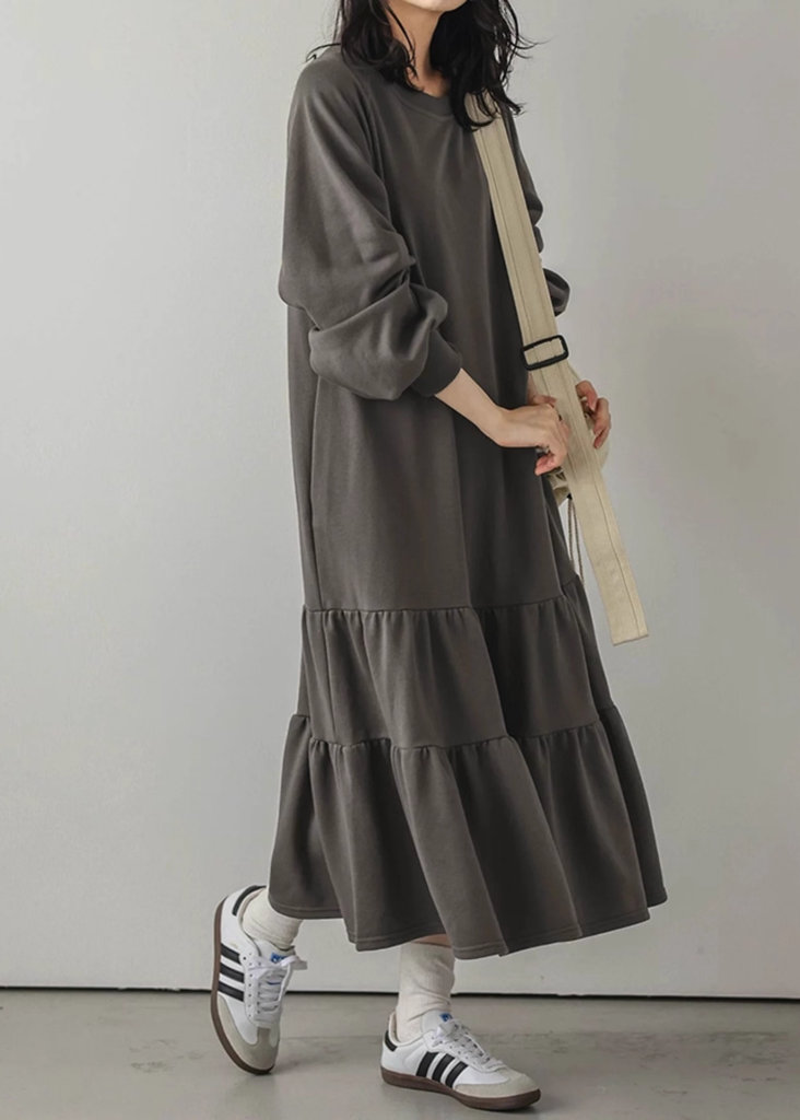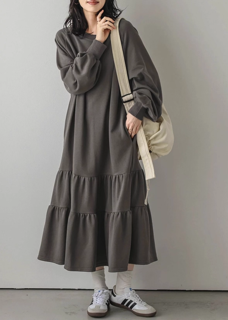 軽やかなティアードシルエットが魅力の、カジュアルフェミニンなスウェットワンピース。