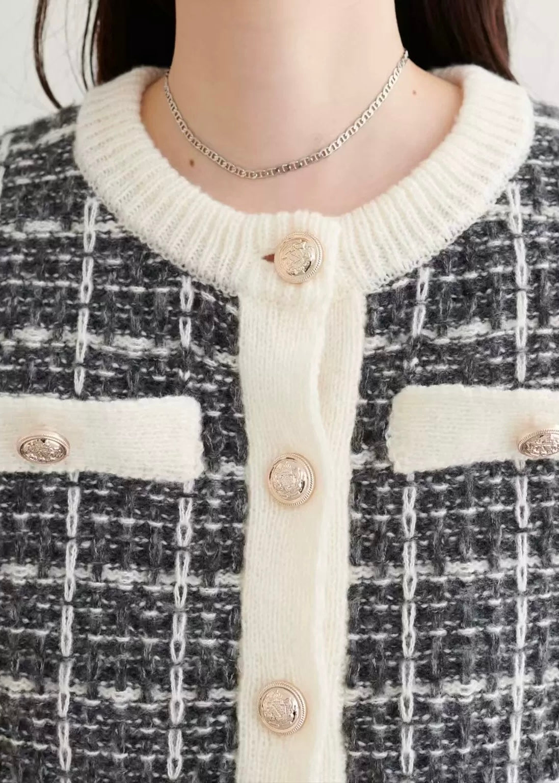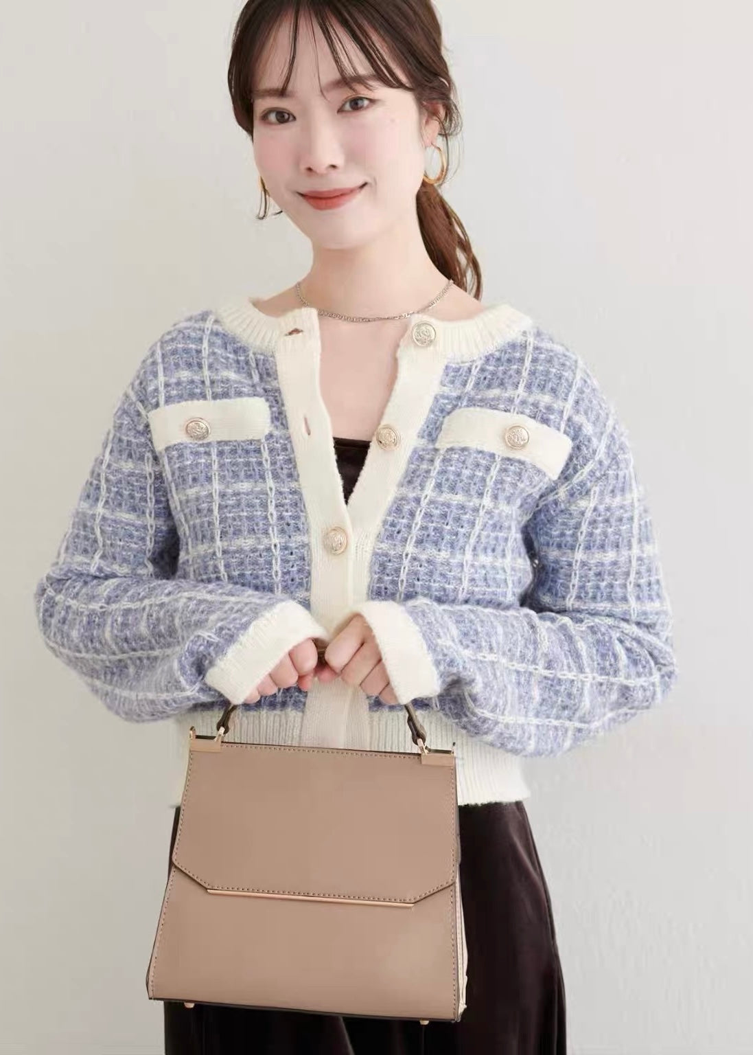 配色トリムデザインがアクセントとなり、着るだけでクラシカルなムードに。