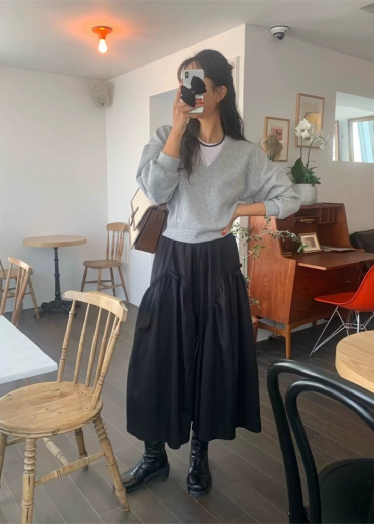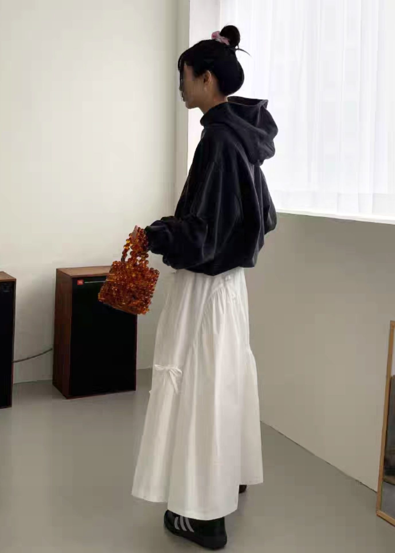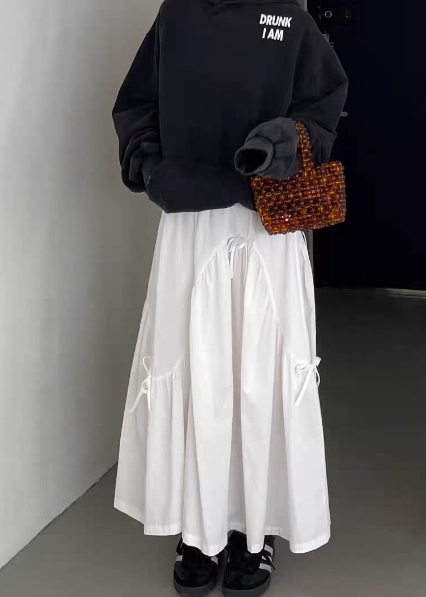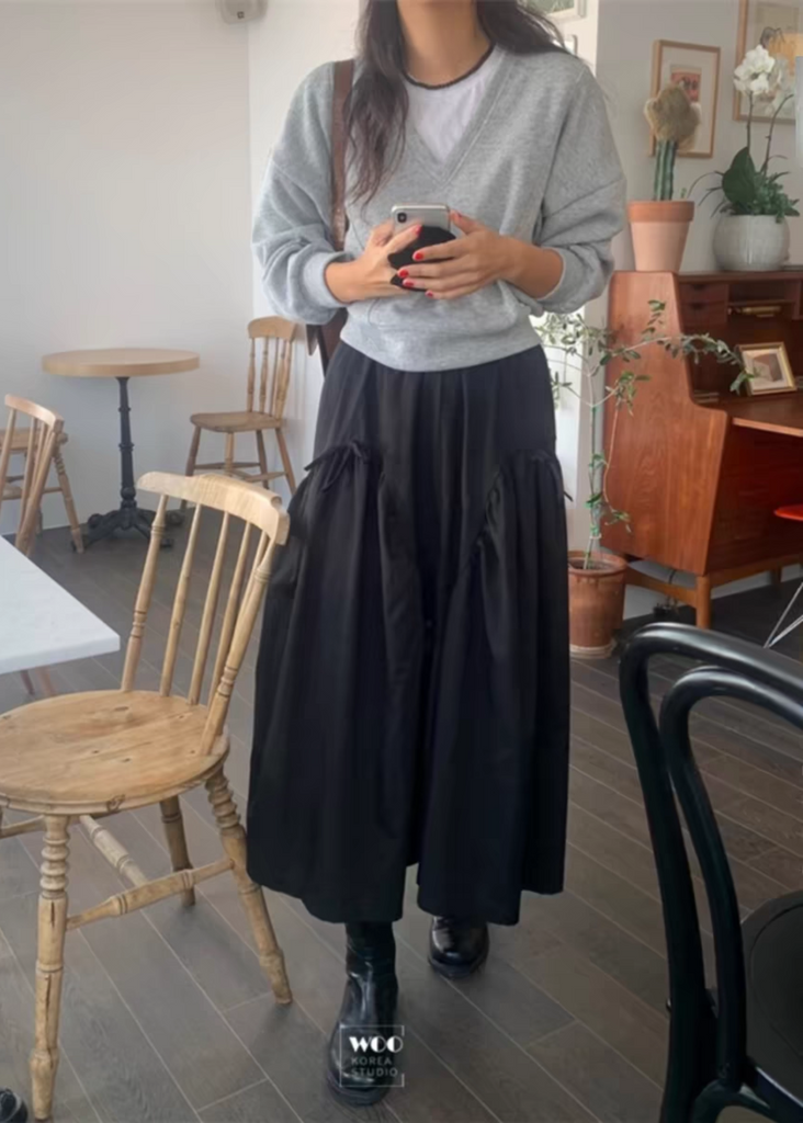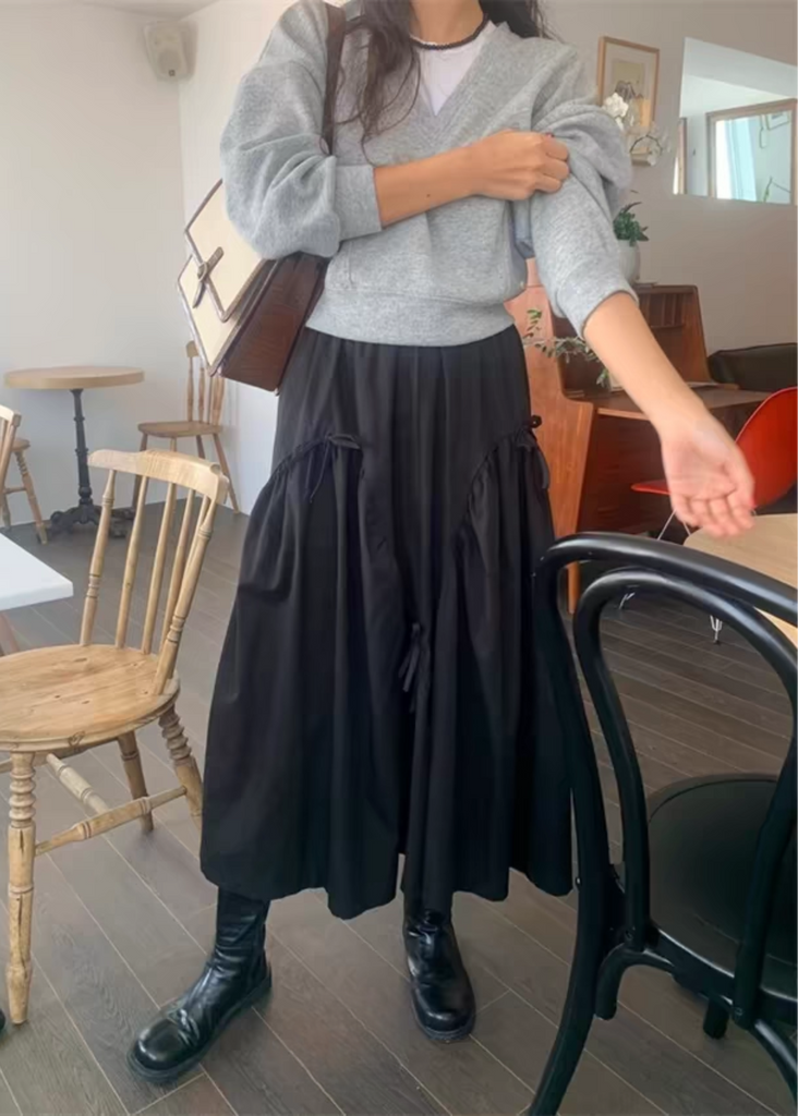 ギャザーとドローストリングがアクセントになった、リラクシームード漂うパネルスカート。