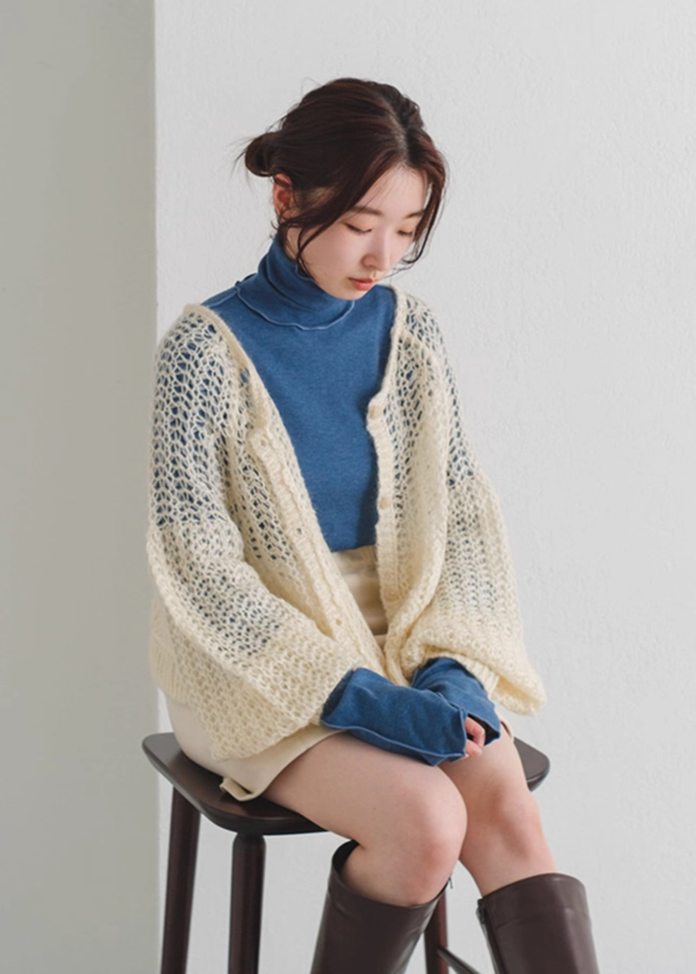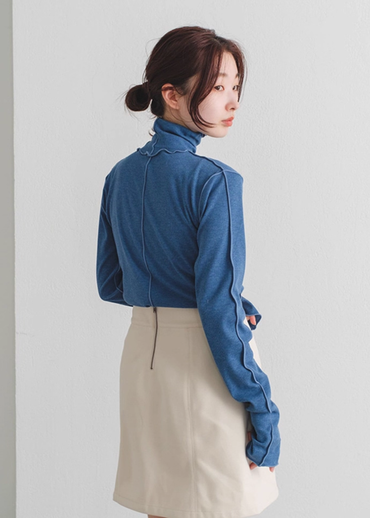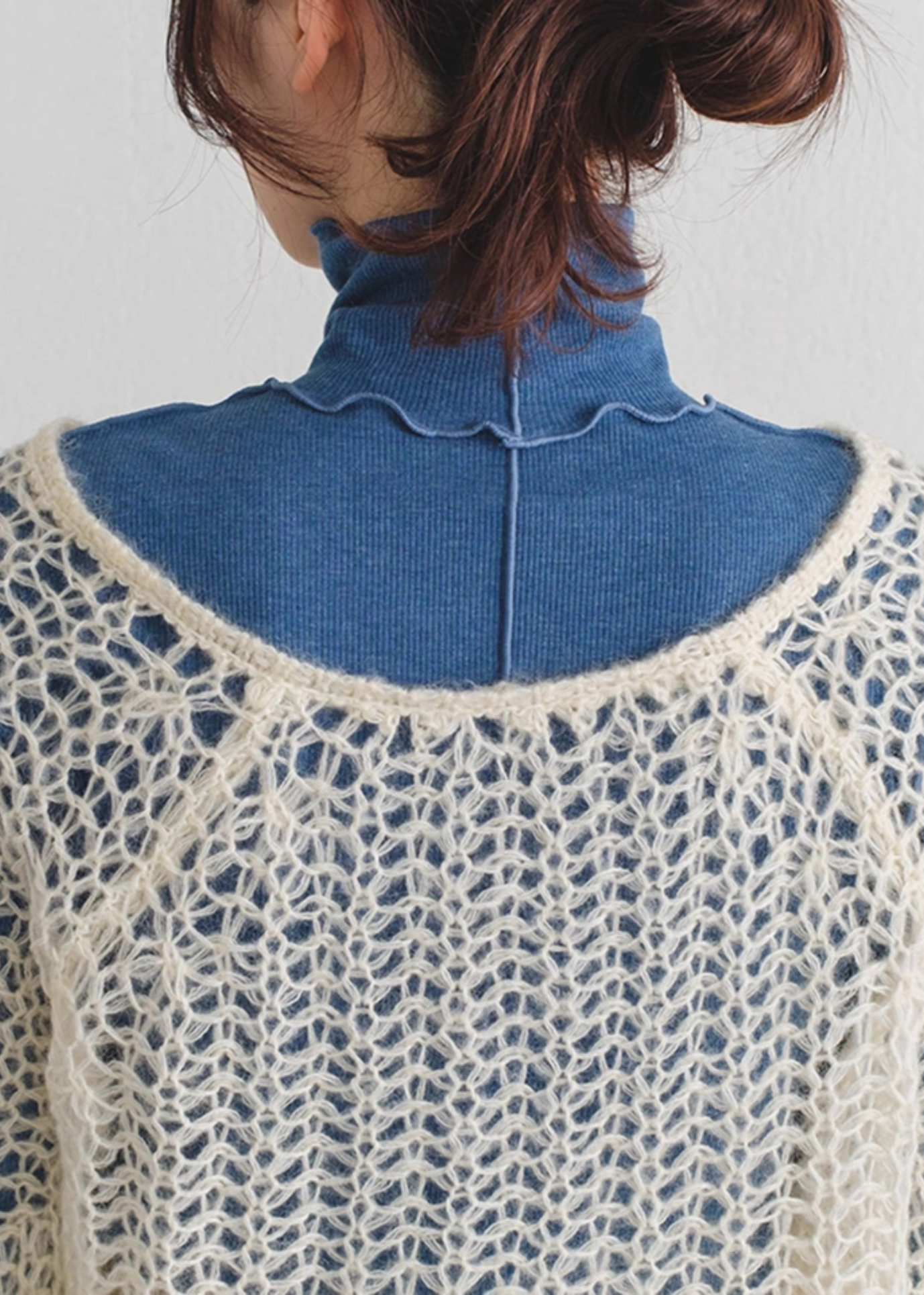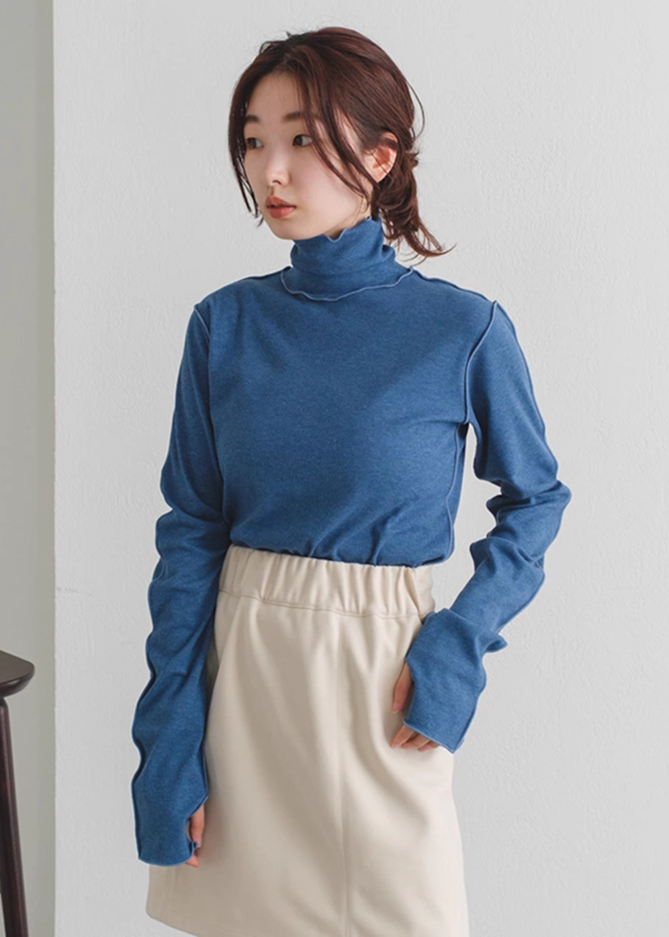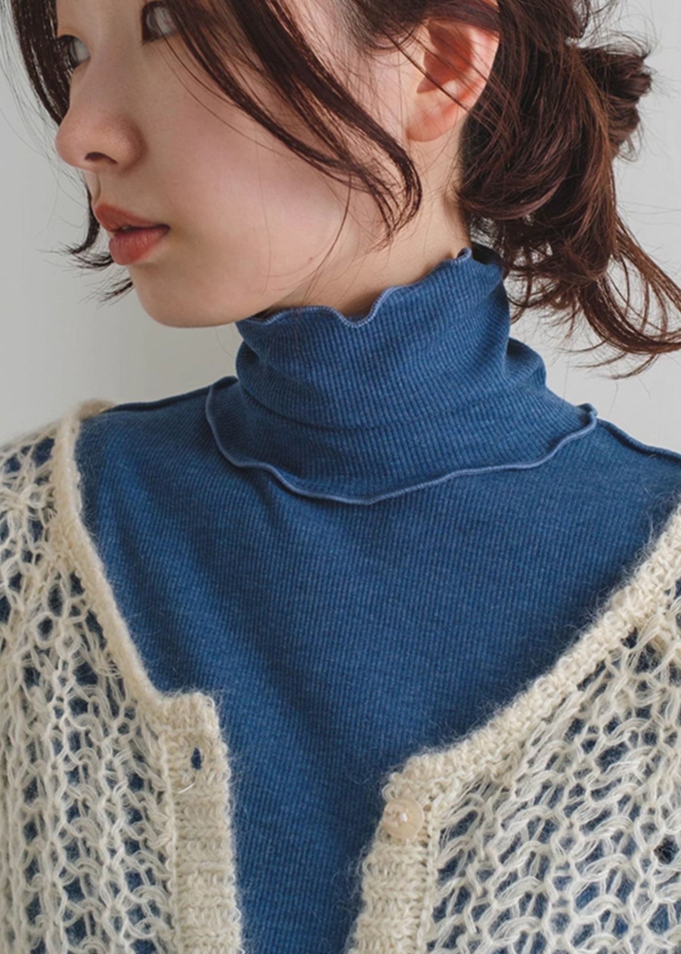 さりげないメロウデザインが女性らしさを引き立てるタートルトップス。