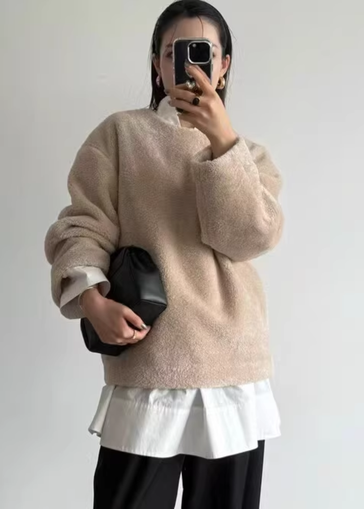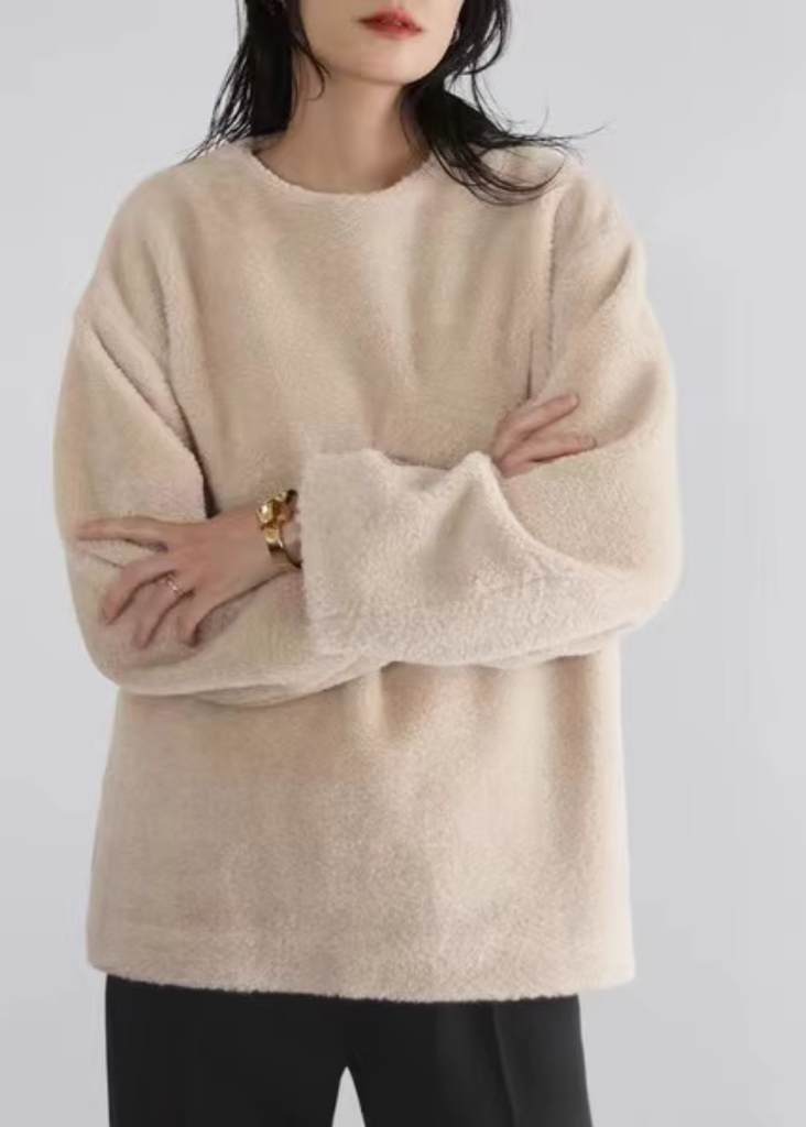 ふんわりと包み込むような肌触りが魅力のボアタッチプルオーバー。