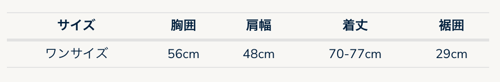 ワンサイズ | 56cm | 48cm | 70-77cm | 29cm |