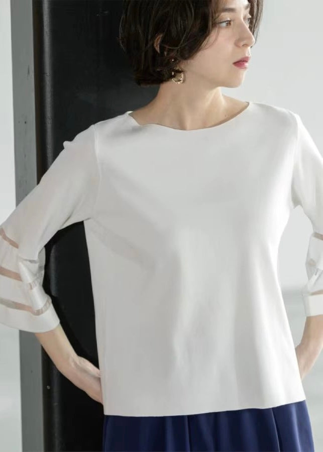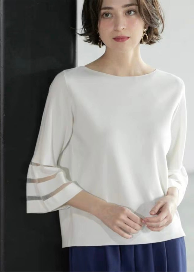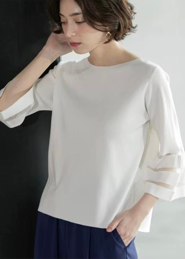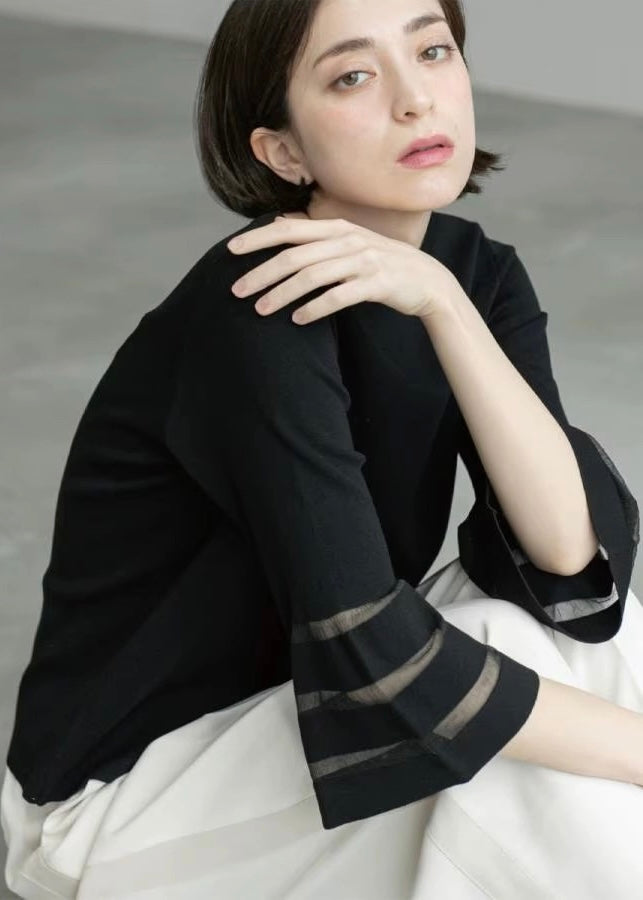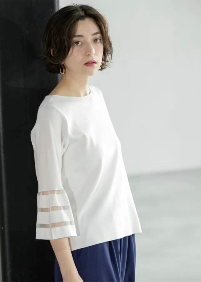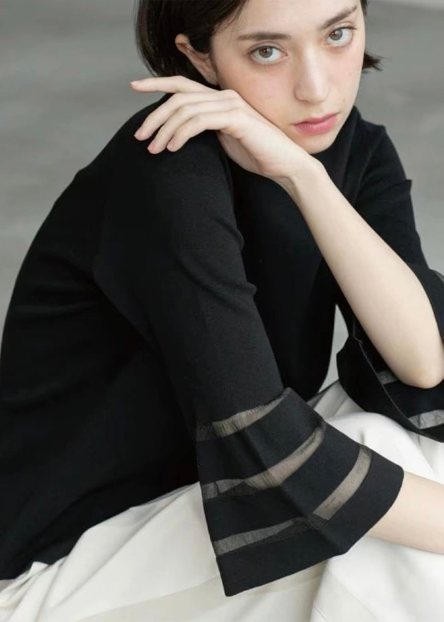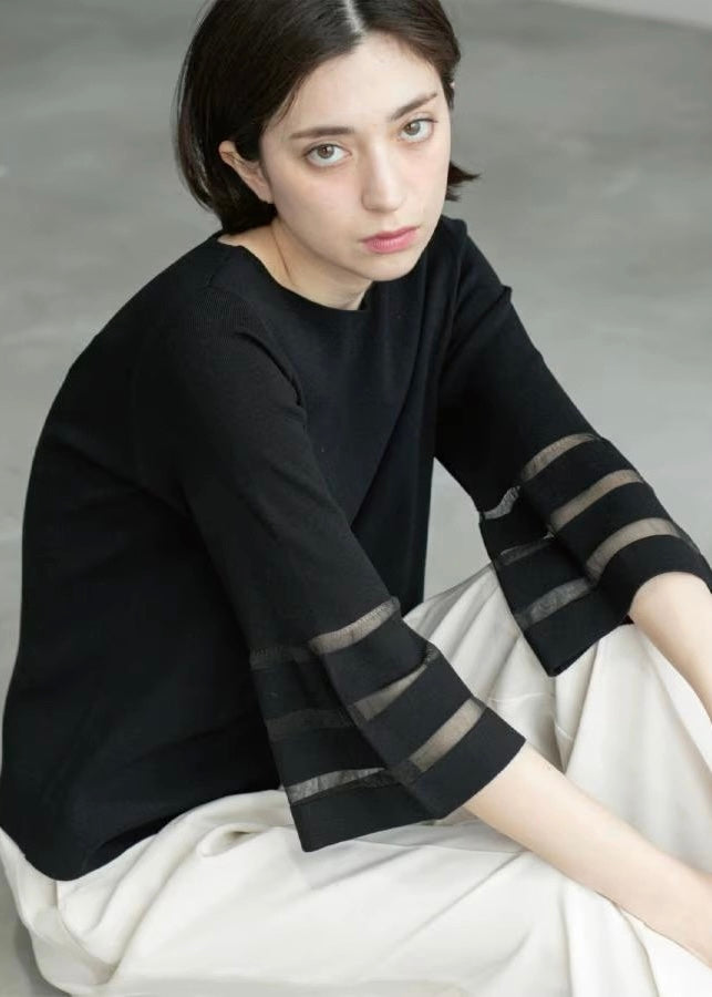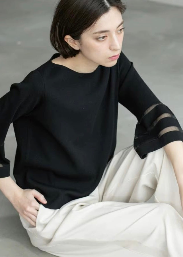 袖に透け感のあるラインをあしらった、上品で抜け感のあるプルオーバー。
