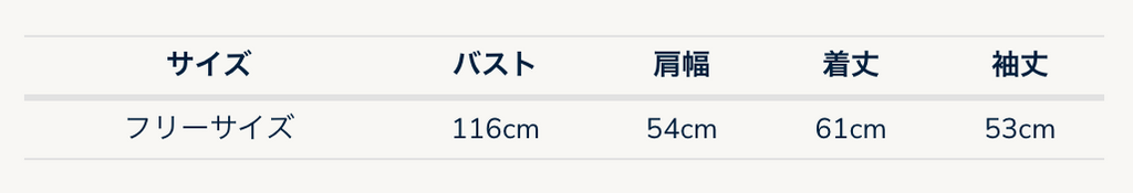 サイズ | バスト | 肩幅 | 着丈 | 袖丈 |
