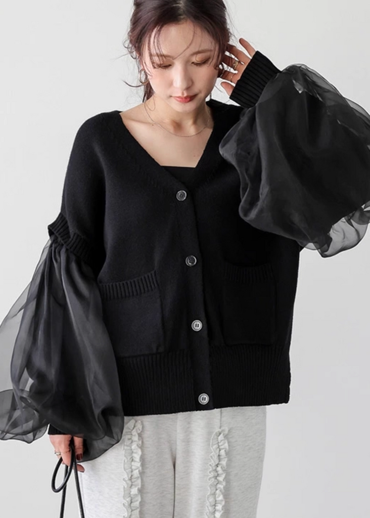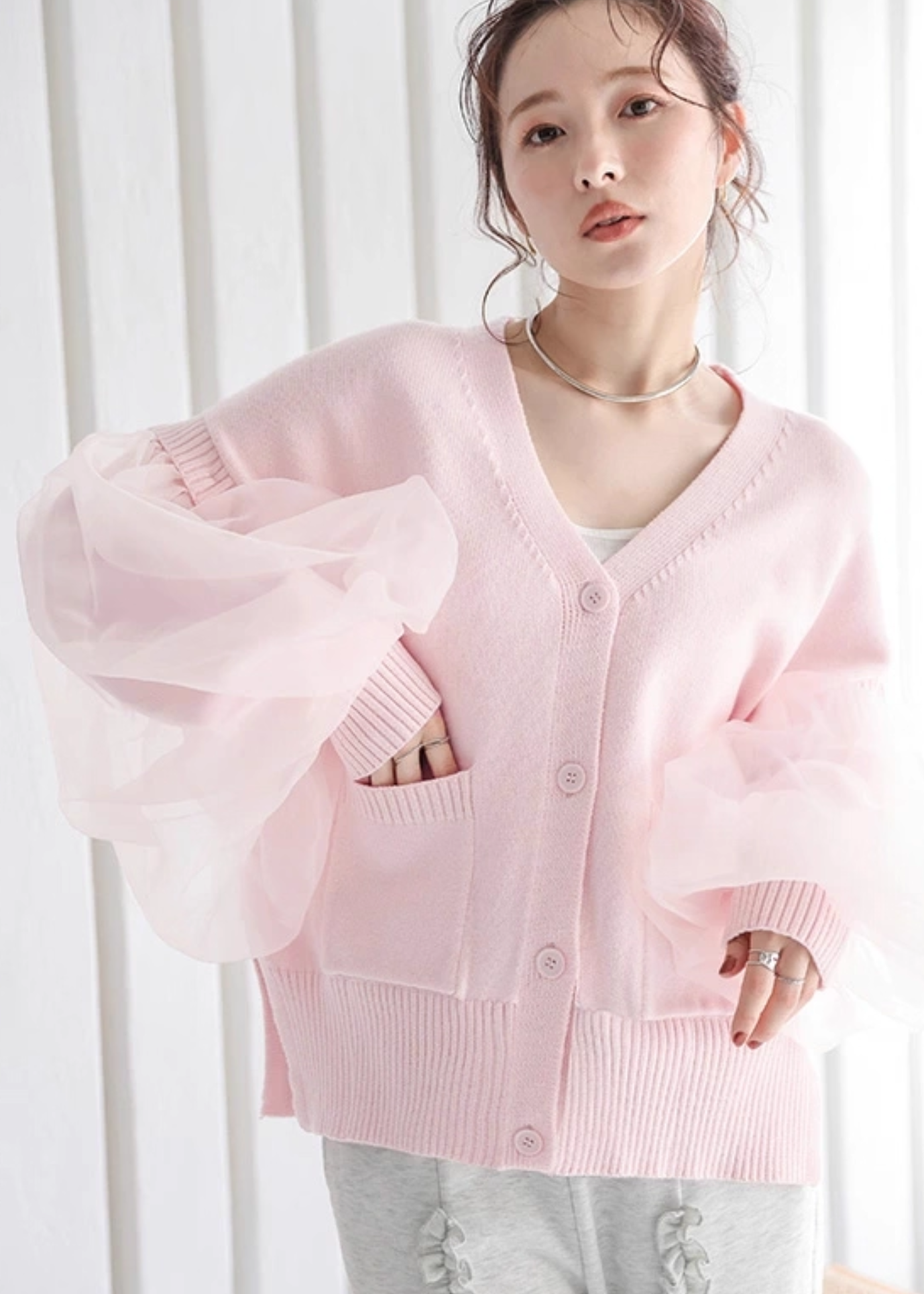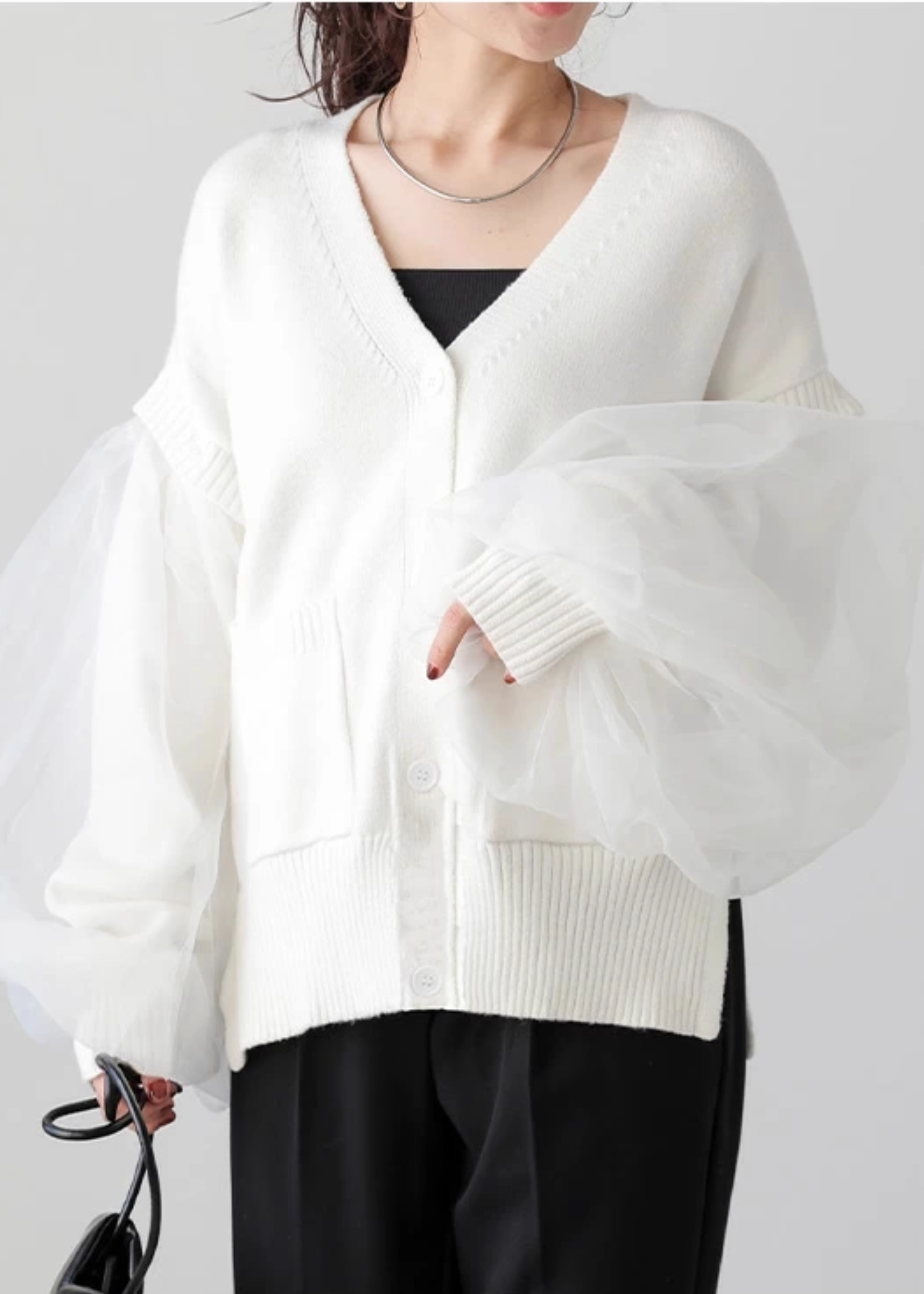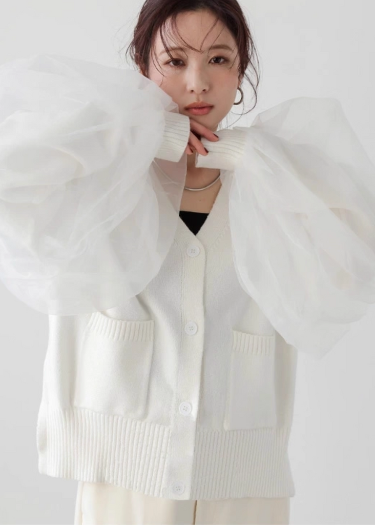 ふんわりチュール袖が目を惹く、着映え抜群の2WAYニットカーディガン。