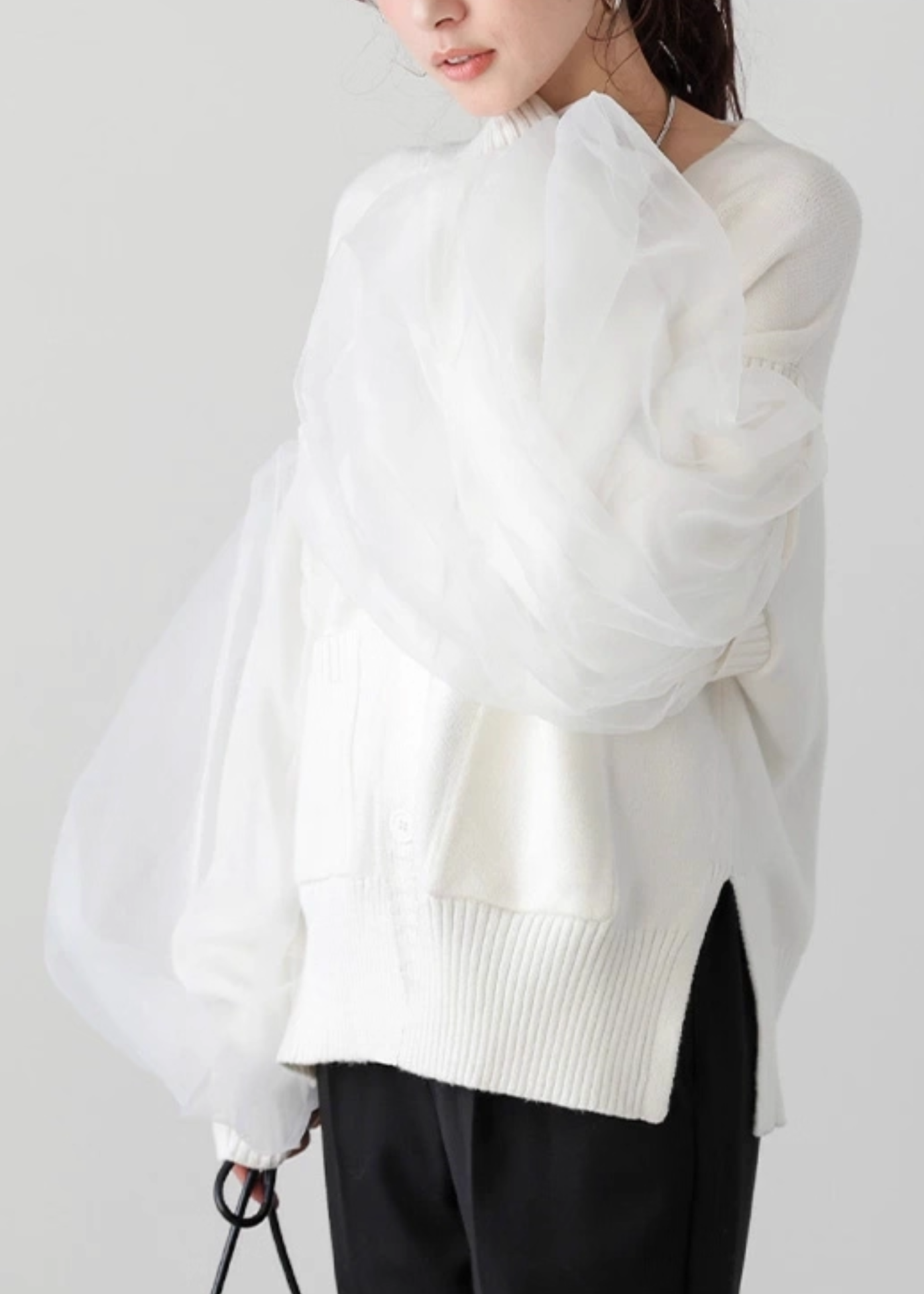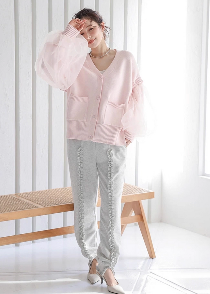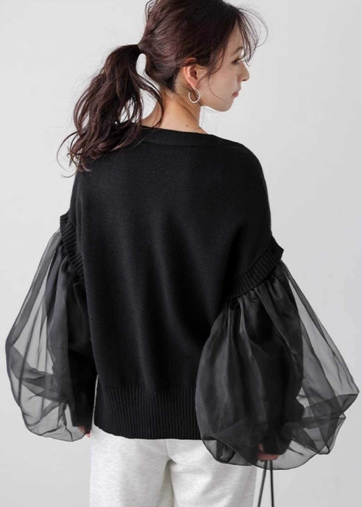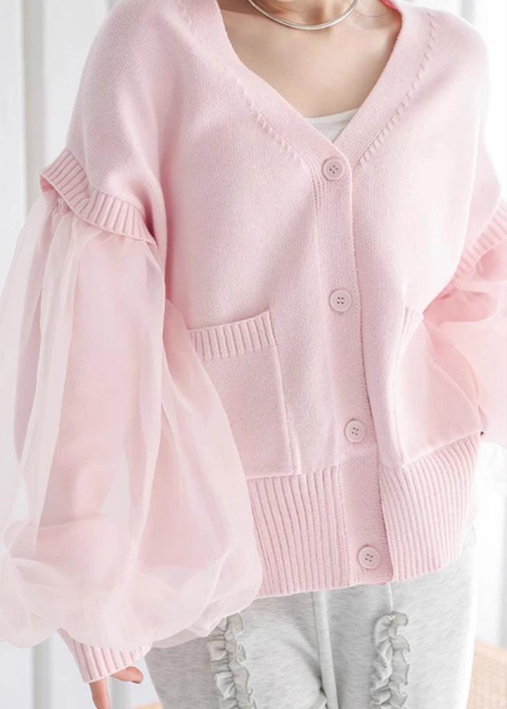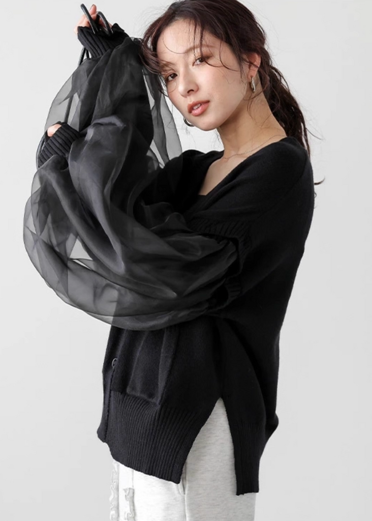 ふんわりチュール袖が目を惹く、着映え抜群の2WAYニットカーディガン。