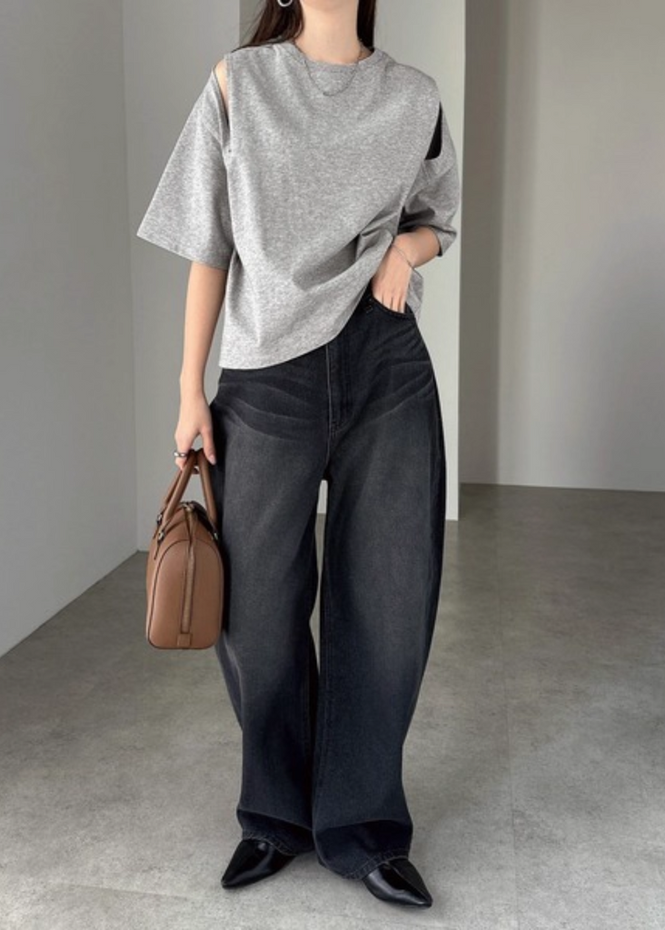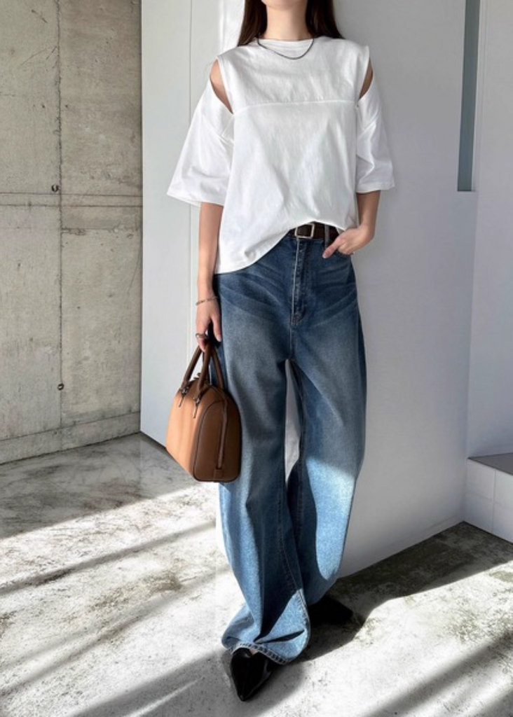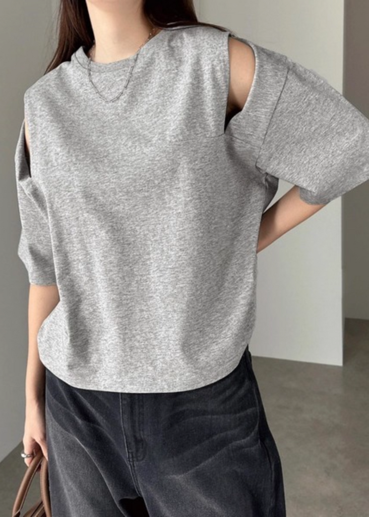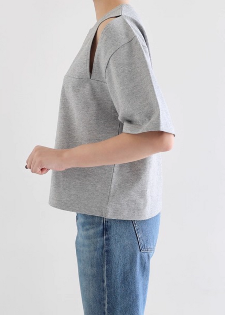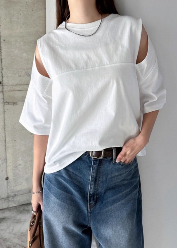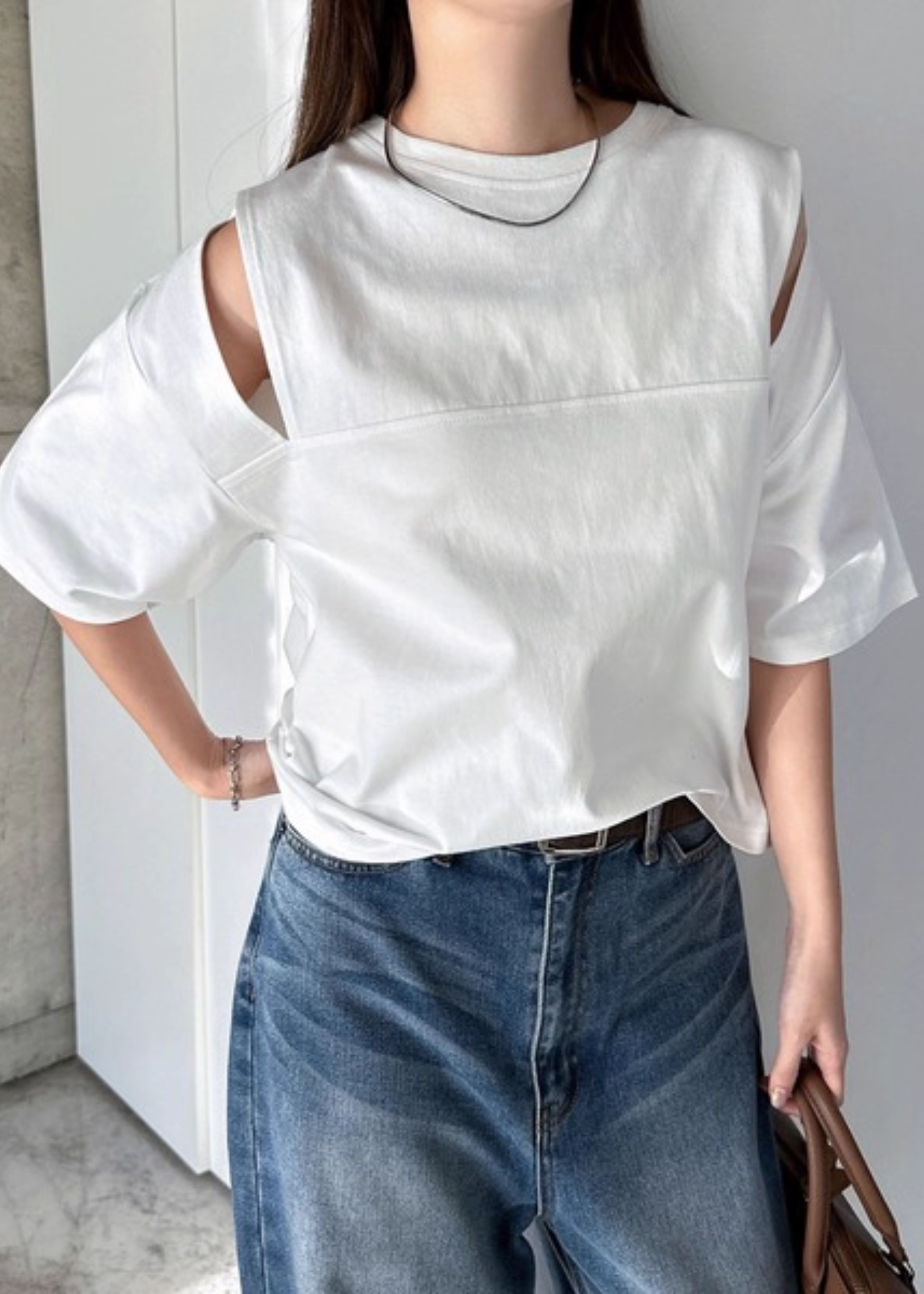 肩のスリットデザインが目を惹く、大人の抜け感漂うカットソー。